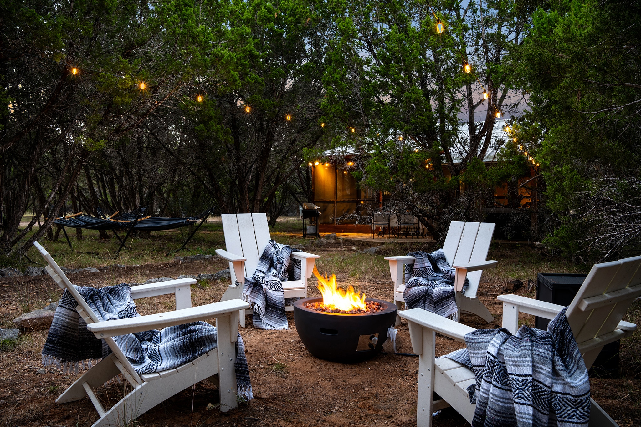 The Hill Country’s backroads explode in color during fall. Cruise from Wimberley to nearby Blanco or Luckenbach with a playlist and a thermos of coffee. - Cozy Up at the Lodge Fire Pit